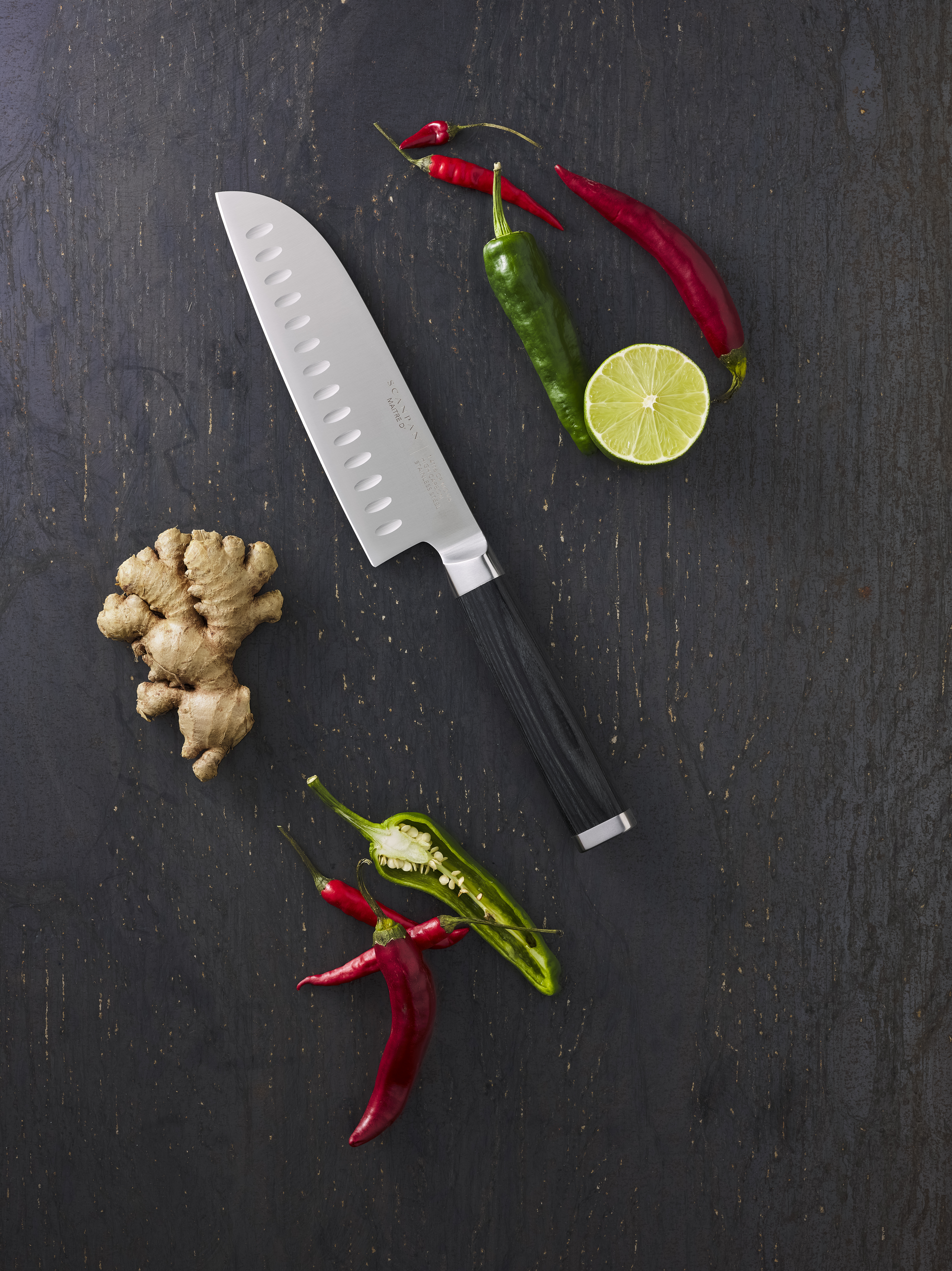 Durch den Kullenschliff bekommt die breite Klinge eine „unebene“ Oberfläche, wodurch Geschnittenes nicht am Messer haften bleibt. Ein eindeutiger Vorteil, wenn man dünne Scheiben selbst größerer Obst- und Gemüsesorten schneiden möchte. Die breite Klinge aus hochwertigem deutschen Messerstahl ermöglicht eine präzise Führung beim Schneiden.